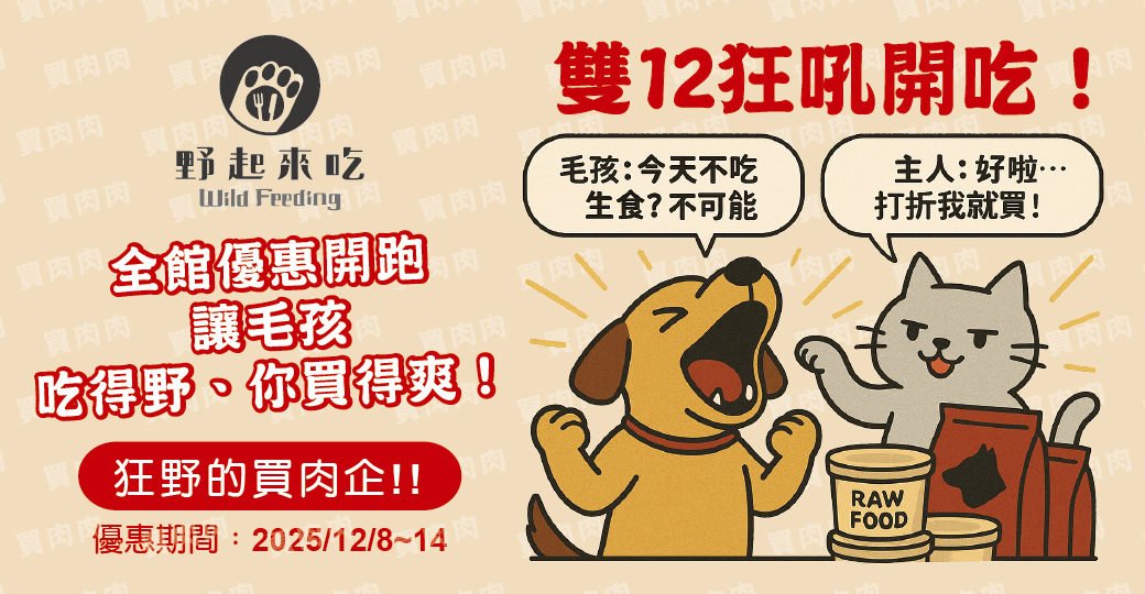 野起來吃🎉雙12狂吼開吃!👉全館優惠開跑,讓毛孩吃得野、你買得爽!